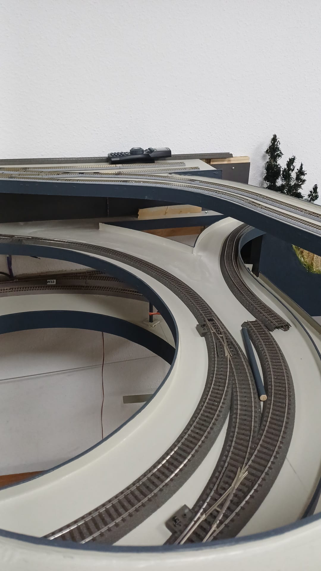 Ook aan de H0 3rail digitaal (middelste laag) zijn de nodige verbeteringen doorgevoerd. Zo is het baanplan een in de Märklin CS3 centrale geüpdatet. Links van het midden is een extra (verbinding) spoor aangelegd. De rechter keerlus uitgebreid van enkelspoor naar dubbelspoor. En de wisselstraat kort voor de linker keerlus verandert.
