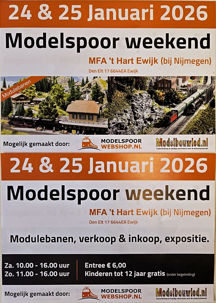 Agenda In de hieronder vermelde agenda staan de activiteiten van de Modelspoorclub Maas en Waal vermeld. Ook deelname met één of meerdere modelspoorbanen van onze club aan een beurs of tentoonstelling zullen hier worden aangekondigd. Uitgelichte activiteiten: Datum – Activiteit 2025 Zaterdag 15 novemberModelspoorbeurs & Houten Digitaal met deelname van onze modelspoorbanen De Oude Haven en Burg Oberlöwenstein Zaterdag 29 en Zondag 30 novemberEuromodelbouw 2025 met deelname van onze modelspoorbanen de Waterlinie en de Instapper. 2026 Zaterdag 10 en Zondag 11 januariModellbau Lingen deelname met onze modelspoorbaan M-Bahn; Zaterdag 24 en zondag 25 januariModelspoor weekend, deelname met onze modelspoorbaan Instapper. Zaterdag 28 februari en Zondag 1 maartModellbau Neumünster deelname met onze modelspoorbanen De Oude Haven en M-Bahn. Voor een uitgebreid overzicht van beurzen, tentoonstellingen of andere spoorse-evenementen worden op diverse websites een agenda bij gehouden.Hieronder een aantal voorbeelden: Beneluxspoor.net 3RailForum Model Trein Beurs Agenda Nederlandse Vereniging van Modelbouwers (NVM) Nederlandse Modelspoor Federatie (NMF)